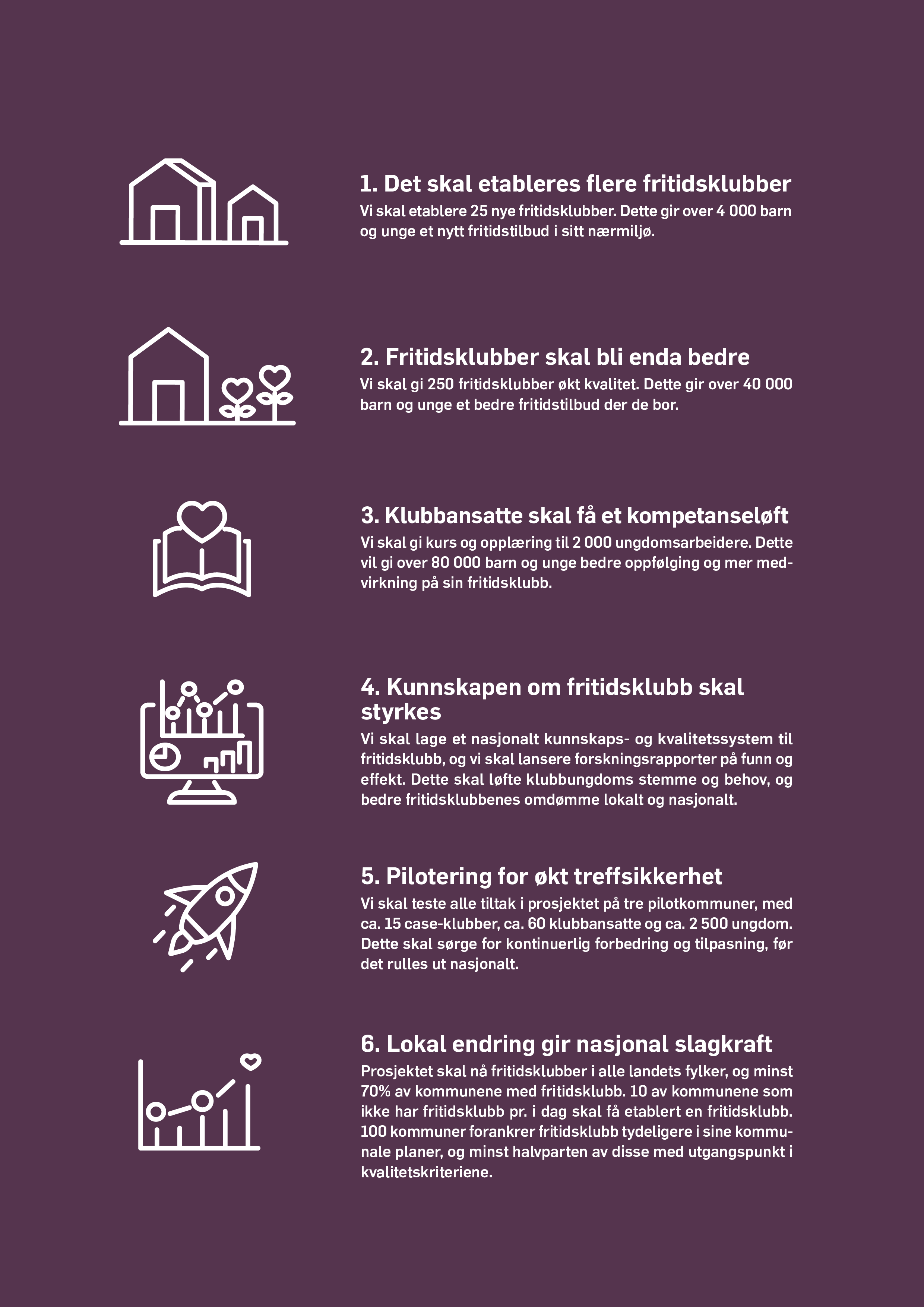 1. 1. Det skal etableres flere fritidsklubber