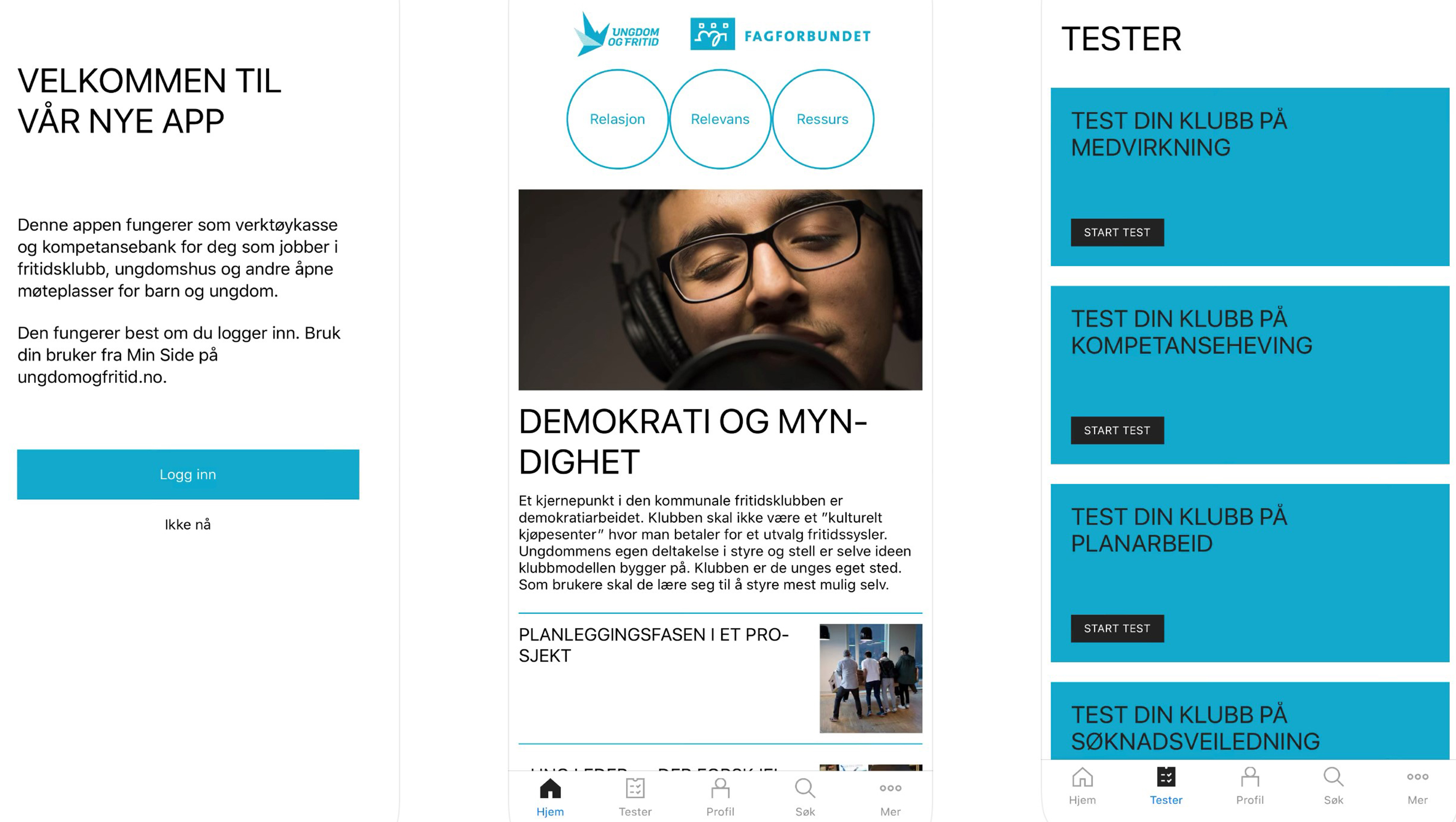 Ungdom og Fritid har i samarbeid med Fagforbundet utviklet en app for ungdomsarbeidere. Appen fungerer som en kompetanseportal hvor det ligger lett tilgjengelig informasjon, kunnskap, verktøy, inspirasjon, tips og råd. Appen har et nyttig og praksisorientert innhold. Den skal kunne brukes både av ledere og andre medarbeidere. Den retter seg i hovedsak mot ansatte på fritidsklubber, men kan brukes av alle som jobber med ungdom. Innholdet spenner fra lovverk, rutiner og retningslinjer til konkrete øvelser og metodikker i møte med ungdom.