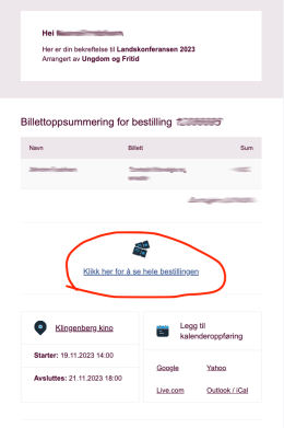 Dette finner du i e-posten som ble brukt i bestillingen.